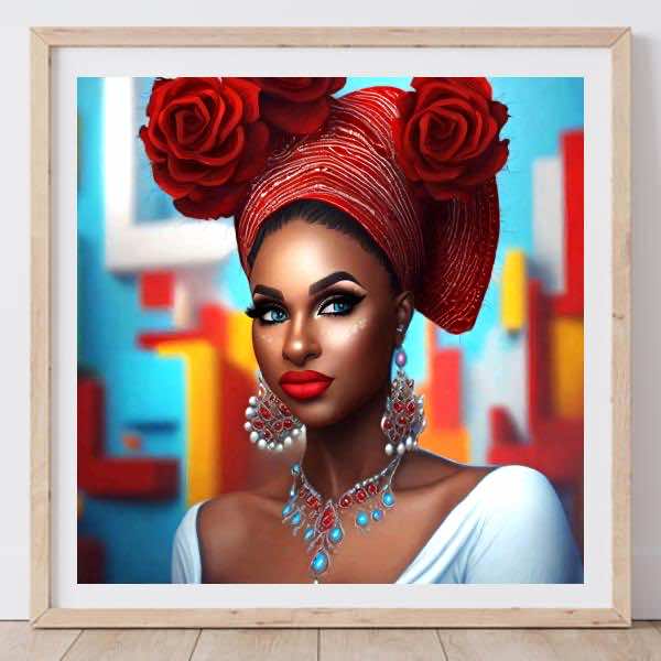 AI アートでは通常 A6 サイズ相当くらい (縦横 500〜1000 ピクセルくらい) の荒い画像しかつくれないので,超解像という技術をつかって原画より解像度を 4〜8 倍に (こまかく) しています. ただし,上の商品画像の解像度は原画と同程度なのでご注意ください.