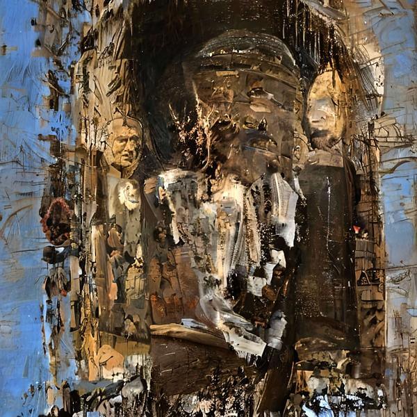 This image was created by ‘anonymous,’ an art unit formed by the creator and the AI (Stable Diffusion 2.1 (768), a program for creating AI artworks). I gave the program the word ‘Rembrandt’ as a prompt and let it create. Also “Rembrandt” was used as the negative prompt.