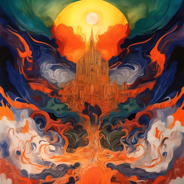 これらの画像は通常の AI アートとはちがう独自の方法を使って作っています. AI アートは AI にプロンプト (または呪文) とよばれる英語の記述をあたえて作画した画像ですが, Stable Diffusion,DALL・E 2,Midjourney などの AI プログラムによって 2022 年に爆発的に普及しました. AI アートで望む画像を作るために通常は比較的細かい指示を与えます. しかしデイシンではおもに 1〜4 語程度の短いことばや造語を Stable Diffusion XL 1.0 (1024) を使用している OpenArt,NightCafe などのウェブサイトで使用して,そのプログラムがもつ知識をいかして自由に (ジェネラティブに,創発的に) 画像をつくらせています. コントラストの調整等はしていますが,描きなおさせたり加筆したりするようなことはしていません.