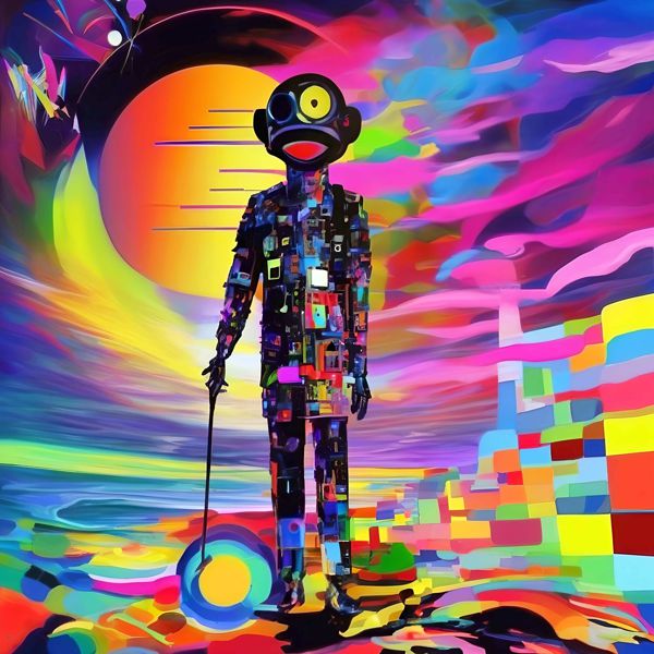 制作者と AI (AI アート作成用のプログラム Stable Diffusion XL 1.0 (1024)) とからなるアートユニット カナブストラクド によるアート画像です.そのプログラムに「Kanabstracd surreal Metzinger」ということば (prompt) をあたえて創造させました. 負のプロンプトとして「Metzinger knots」を指定しています.