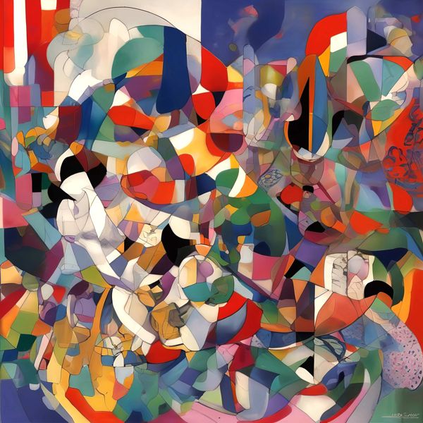 制作者と AI (AI アート作成用のプログラム Stable Diffusion XL 1.0 (1024)) とからなるアートユニット カナブストラクド によるアート画像です.そのプログラムに「Kanabstracd surrealism Albert_Gleizes」ということば (prompt) をあたえて創造させました. 負のプロンプトとして「surrealism Albert_Gleizes arrows」を指定しています.
