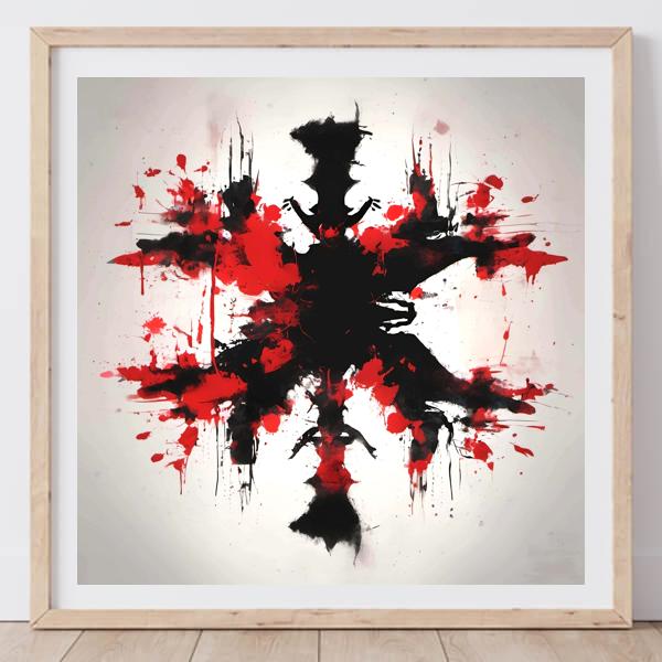 制作者と AI (AI アート作成用のプログラム Stable Diffusion XL 1.0 (1024)) とからなるアートユニット カナブストラクド によるアート画像です.そのプログラムに「Kanabstracd Rorschach」ということば (prompt) をあたえて創造させました. 負のプロンプトとして「intricate」を指定しています.