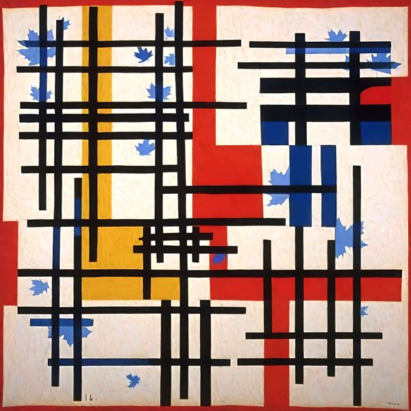 制作者と AI (AI アート作成用のプログラム Stable Diffusion XL 1.0 (1024)) とからなるアートユニット カナブストラクド によるアート画像です.そのプログラムに「Yasusi_Kanada Mondrian」ということば (prompt) をあたえて創造させました. 負のプロンプトとして「Mondrian」を指定しています.