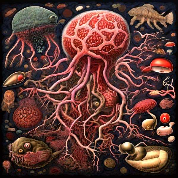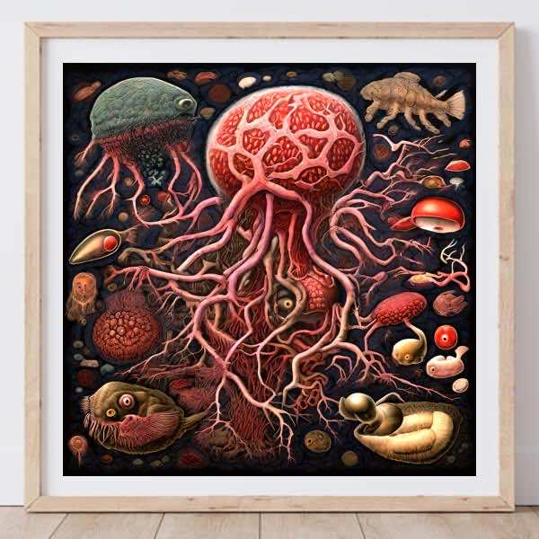 This image was created by ‘Kana,’ an art unit formed by the creator and the AI (Stable Diffusion XL 1.0 (1024), a program for creating AI artworks). I gave the program the word ‘Yasusi_Kanada organism’ as a prompt and let it create.