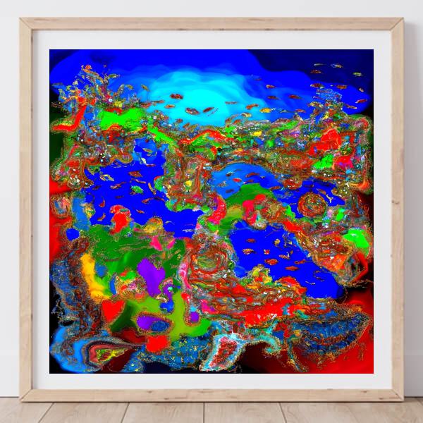 制作者と AI (AI アート作成用のプログラム Stable Diffusion XL 1.0 (1024)) とからなるアートユニット カナブストラクド によるアート画像です.そのプログラムに「Kanabstracd reef」ということば (prompt) をあたえて創造させました. 負のプロンプトとして「reef」を指定しています.