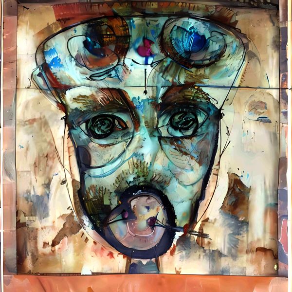 これらの画像は通常の AI アートとはちがう独自の方法を使って作っています. AI アートは AI にプロンプト (または呪文) とよばれる英語の記述をあたえて作画した画像ですが, Stable Diffusion,DALL・E 2,Midjourney などの AI プログラムによって 2022 年に爆発的に普及しました. AI アートで望む画像を作るために通常は比較的細かい指示を与えます. しかしデイシンではおもに 1〜4 語程度の短いことばや造語を Stable Diffusion 2.1 (768) を使用している OpenArt,NightCafe などのウェブサイトで使用して,そのプログラムがもつ知識をいかして自由に (ジェネラティブに,創発的に) 画像をつくらせています. コントラストの調整等はしていますが,描きなおさせたり加筆したりするようなことはしていません.