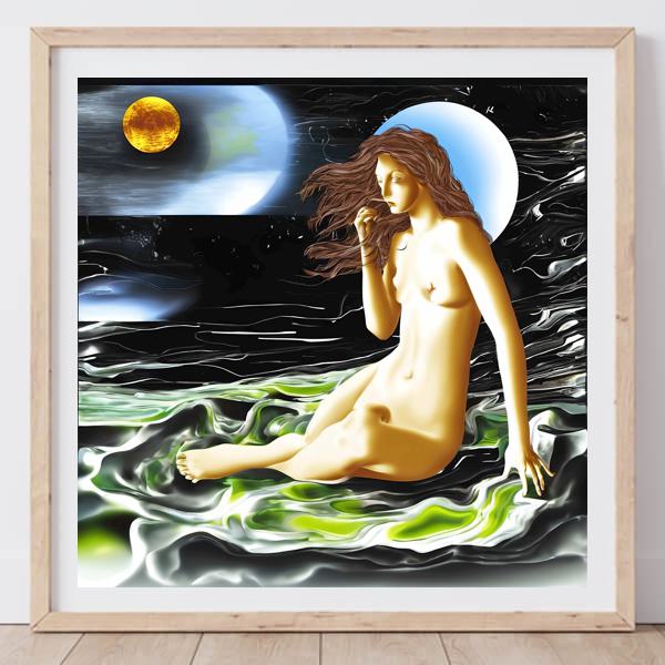 In AI art, the images generated are usually quite rough—about the size of an A6 print (roughly 500–1000 pixels on each side). To make them suitable for presentation, I use a technique called super-resolution, which increases the resolution 4–8 times higher than the original, adding finer detail. However, please note that the resolution of the product image shown above is about the same as the original and has not been upscaled.