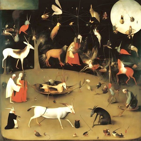 This image was created by ‘Kanabstracd,’ an art unit formed by the creator and the AI (Stable Diffusion XL 1.0 (1024), a program for creating AI artworks). I gave the program the word ‘Kanabstracd Hieronymus_Bosch’ as a prompt and let it create. Also “absurdism ” was used as the negative prompt.