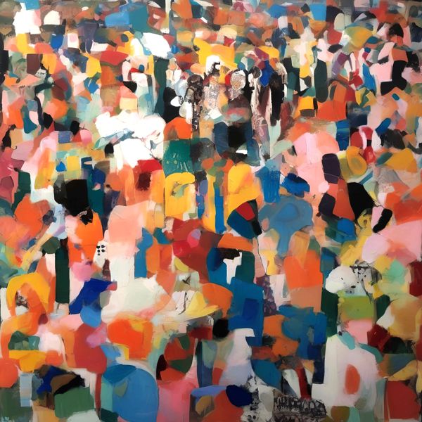 制作者と AI (AI アート作成用のプログラム Stable Diffusion XL 1.0 (1024)) とからなるアートユニット カナブストラクド によるアート画像です.そのプログラムに「Kanabstracd absurdism Seurat」ということば (prompt) をあたえて創造させました. 負のプロンプトとして「barbeds」を指定しています.