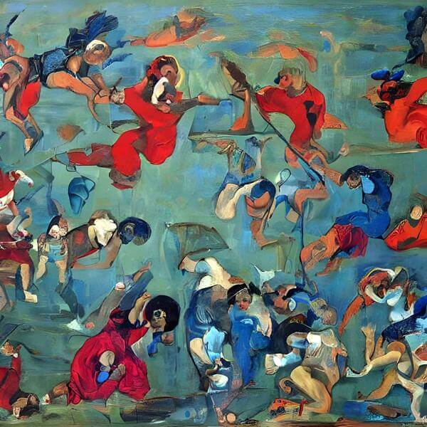 制作者と AI (AI アート作成用のプログラム ) とからなるアートユニット anonymous による画家風のアート画像です.そのプログラムに「🖼 =」ということば (prompt) をあたえて創造させました.