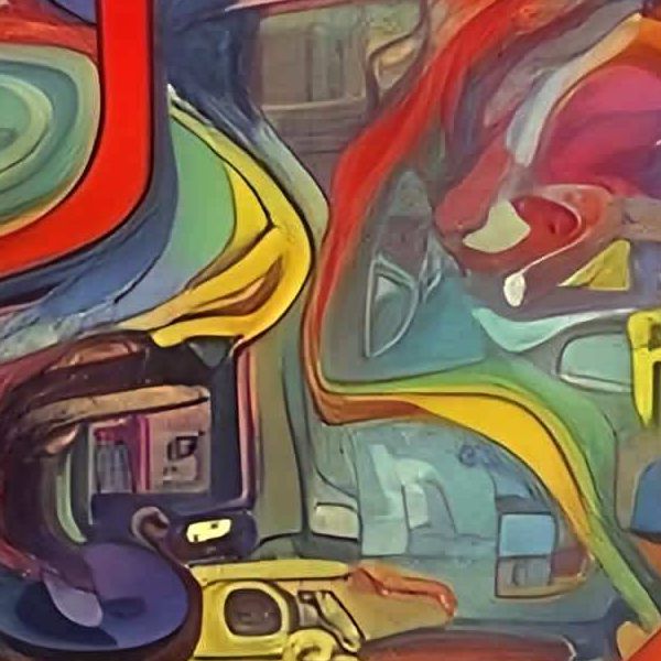 制作者と AI (AI アート作成用のプログラム Stable Diffusion XL 1.0 (1024)) とからなるアートユニット カナブストラクド によるアート画像です.そのプログラムに「Kanabstracd surrealism Pollock」ということば (prompt) をあたえて創造させました. 負のプロンプトとして「Pollock bows」を指定しています.