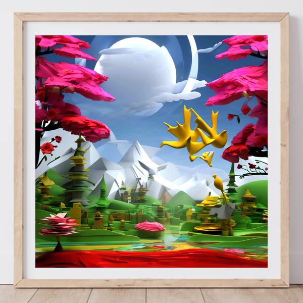 制作者と AI (AI アート作成用のプログラム Stable Diffusion XL 1.0 (1024)) とからなるアートユニット カナブストラクド によるアート画像です.そのプログラムに「Kanabstracd 3D Hiroshige」ということば (prompt) をあたえて創造させました. 負のプロンプトとして「Hiroshige」を指定しています.