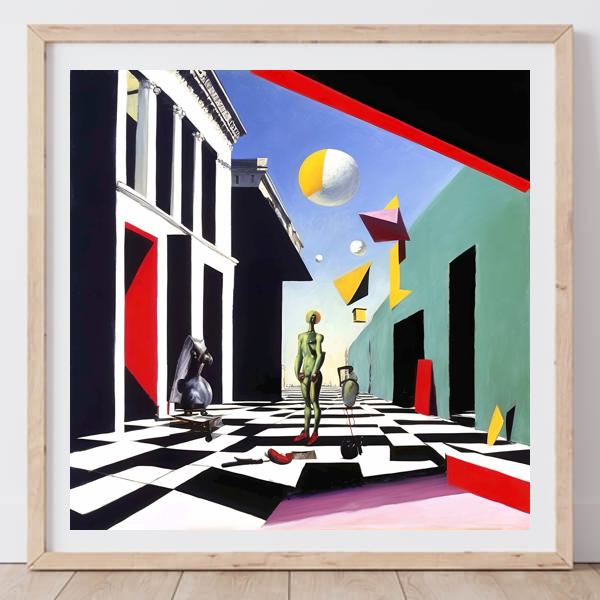AI Artwork: Kanabstracd “Chirico-esque Absurd Realism without Woodgrain”