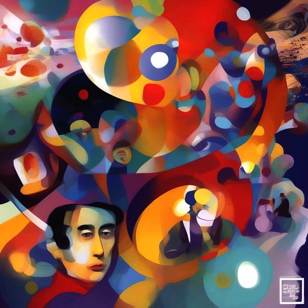 This image was created by ‘Kanabstracd,’ an art unit formed by the creator and the AI (Stable Diffusion XL 1.0 (1024), a program for creating AI artworks). I gave the program the word ‘Kanabstracd surrealism Chagall’ as a prompt and let it create. Also “Chagall barbeds ” was used as the negative prompt.