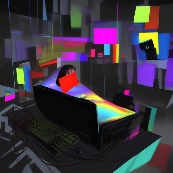 これらの画像は通常の AI アートとはちがう独自の方法を使って作っています. AI アートは AI にプロンプト (または呪文) とよばれる英語の記述をあたえて作画した画像ですが, Stable Diffusion,DALL・E 2,Midjourney などの AI プログラムによって 2022 年に爆発的に普及しました. AI アートで望む画像を作るために通常は比較的細かい指示を与えます. しかしデイシンではおもに 1〜4 語程度の短いことばや造語を Stable Diffusion XL 1.0 (1024) を使用している OpenArt,NightCafe などのウェブサイトで使用して,そのプログラムがもつ知識をいかして自由に (ジェネラティブに,創発的に) 画像をつくらせています. コントラストの調整等はしていますが,描きなおさせたり加筆したりするようなことはしていません.