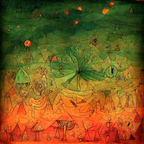制作者と AI (AI アート作成用のプログラム Stable Diffusion XL 1.0 (1024)) とからなるアートユニット anonymous による画家風のアート画像です.そのプログラムに「Klee」ということば (prompt) をあたえて創造させました. 負のプロンプトとして「Mondrian」を指定しています.