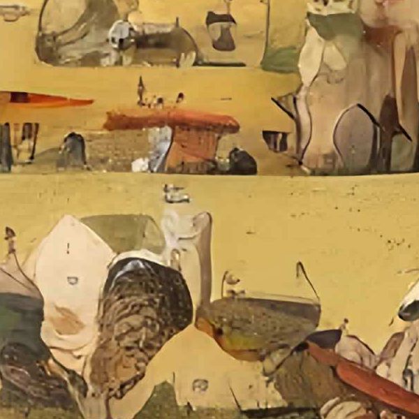 This image was created by ‘Kanabstracd,’ an art unit formed by the creator and the AI (Stable Diffusion XL 1.0 (1024), a program for creating AI artworks). I gave the program the word ‘Kanabstracd Hieronymus_Bosch’ as a prompt and let it create. Also “Hieronymus_Bosch knots ” was used as the negative prompt.