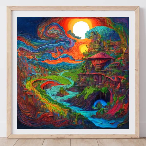 In AI art, the images generated are usually quite rough—about the size of an A6 print (roughly 500–1000 pixels on each side). To make them suitable for presentation, I use a technique called super-resolution, which increases the resolution 4–8 times higher than the original, adding finer detail. However, please note that the resolution of the product image shown above is about the same as the original and has not been upscaled.