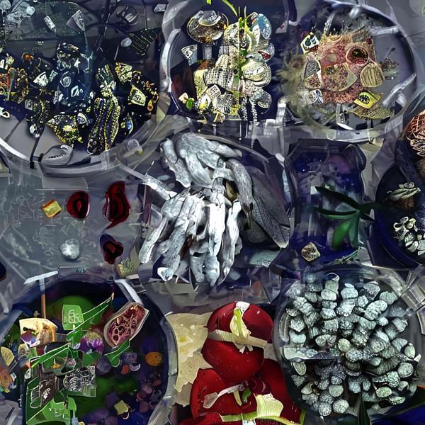 制作者と AI (AI アート作成用のプログラム Stable Diffusion 2.1 (768)) とからなるアートユニット anonymous によるアート画像です.そのプログラムに「microorganisms」ということば (prompt) をあたえて創造させました. 負のプロンプトとして「microorganism」を指定しています.