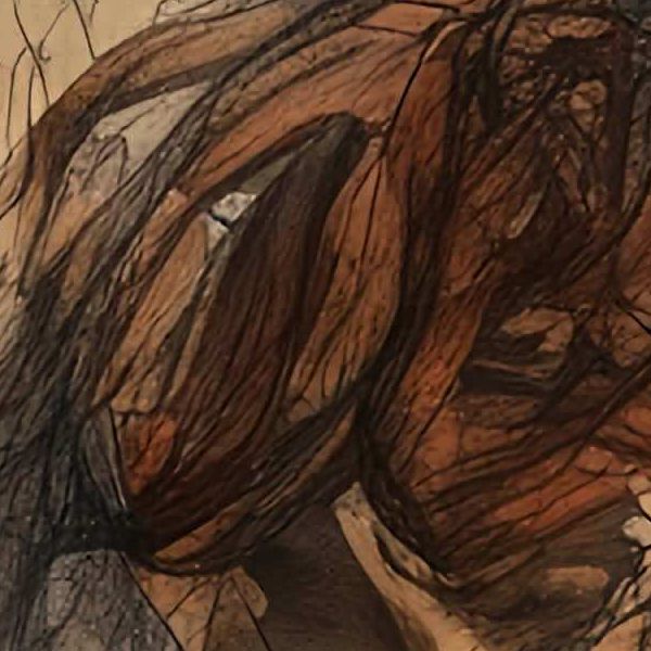 AI アートでは通常 A6 サイズ相当くらい (縦横 500〜1000 ピクセルくらい) の荒い画像しかつくれないので,超解像という技術をつかって原画より解像度を 4〜8 倍に (こまかく) しています. ただし,上の商品画像の解像度は原画と同程度なのでご注意ください.