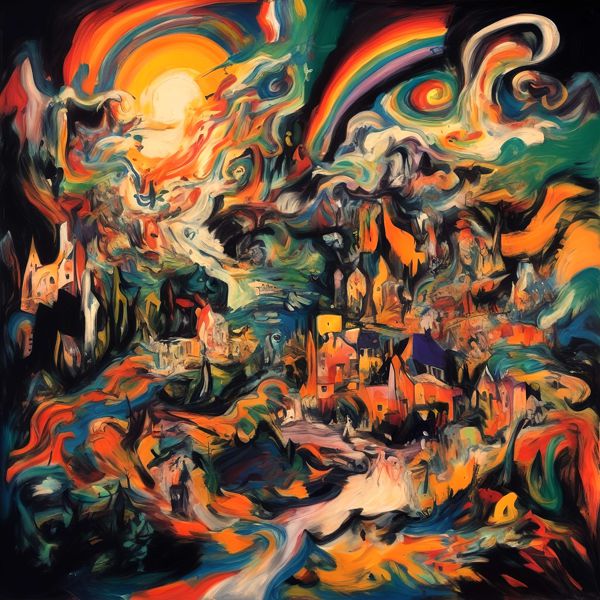 制作者と AI (AI アート作成用のプログラム Stable Diffusion XL 1.0 (1024)) とからなるアートユニット カナブストラクド によるアート画像です.そのプログラムに「Kanabstracd absurd_realism Kandinsky」ということば (prompt) をあたえて創造させました. 負のプロンプトとして「Kandinsky mesh」を指定しています.