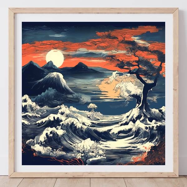 In AI art, the images generated are usually quite rough—about the size of an A6 print (roughly 500–1000 pixels on each side). To make them suitable for presentation, I use a technique called super-resolution, which increases the resolution 4–8 times higher than the original, adding finer detail. However, please note that the resolution of the product image shown above is about the same as the original and has not been upscaled.