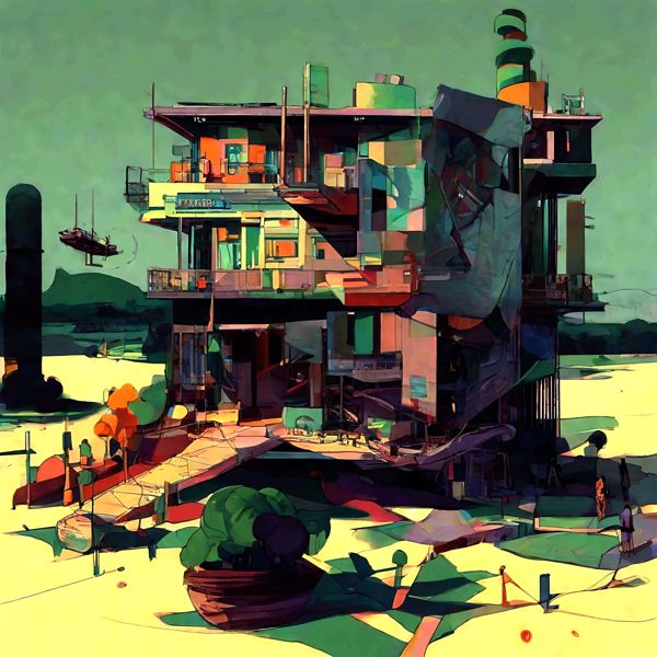 これらの画像は通常の AI アートとはちがう独自の方法を使って作っています. AI アートは AI にプロンプト (または呪文) とよばれる英語の記述をあたえて作画した画像ですが, Stable Diffusion,DALL・E 2,Midjourney などの AI プログラムによって 2022 年に爆発的に普及しました. AI アートで望む画像を作るために通常は比較的細かい指示を与えます. しかしデイシンではおもに 1〜4 語程度の短いことばや造語を Stable Diffusion XL 1.0 (1024) を使用している OpenArt,NightCafe などのウェブサイトで使用して,そのプログラムがもつ知識をいかして自由に (ジェネラティブに,創発的に) 画像をつくらせています. コントラストの調整等はしていますが,描きなおさせたり加筆したりするようなことはしていません.