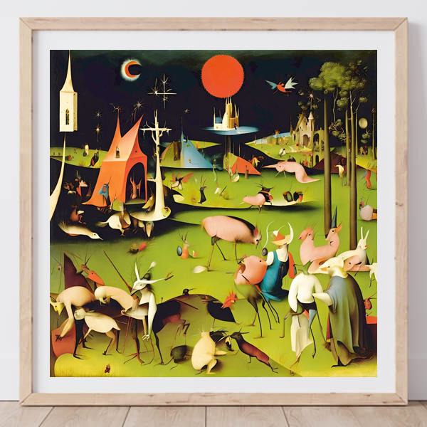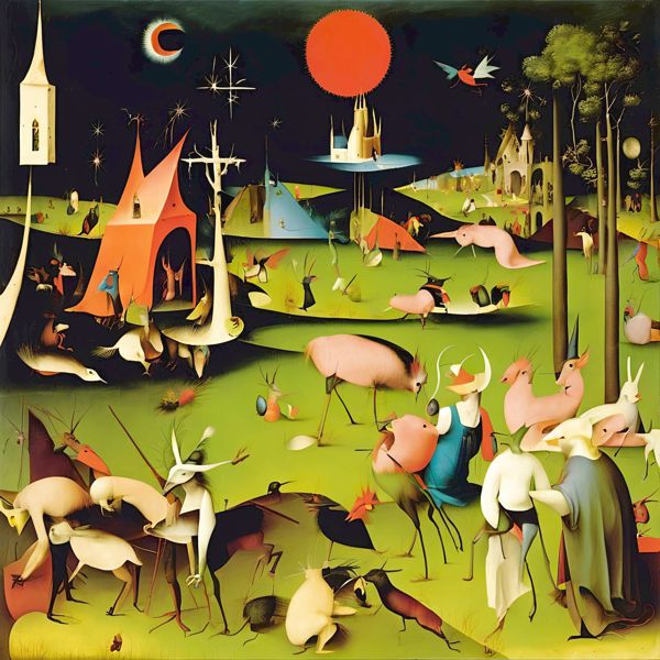 This image was created by ‘Kanabstracd,’ an art unit formed by the creator and the AI (Stable Diffusion XL 1.0 (1024), a program for creating AI artworks). I gave the program the word ‘Kanabstracd Hieronymus_Bosch’ as a prompt and let it create. Also “absurdism ” was used as the negative prompt.