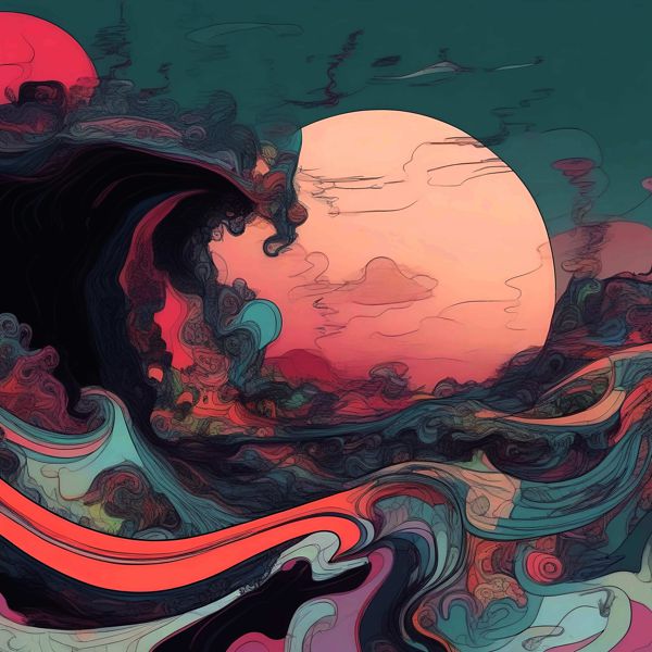 これらの画像は通常の AI アートとはちがう独自の方法を使って作っています. AI アートは AI にプロンプト (または呪文) とよばれる英語の記述をあたえて作画した画像ですが, Stable Diffusion,DALL・E 2,Midjourney などの AI プログラムによって 2022 年に爆発的に普及しました. AI アートで望む画像を作るために通常は比較的細かい指示を与えます. しかしデイシンではおもに 1〜4 語程度の短いことばや造語を Stable Diffusion XL 1.0 (1024) を使用している OpenArt,NightCafe などのウェブサイトで使用して,そのプログラムがもつ知識をいかして自由に (ジェネラティブに,創発的に) 画像をつくらせています. コントラストの調整等はしていますが,描きなおさせたり加筆したりするようなことはしていません.