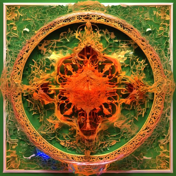 制作者と AI (AI アート作成用のプログラム Stable Diffusion XL 1.0 (1024)) とからなるアートユニット カナブストラクド によるアート画像です.そのプログラムに「Kanabstracd 3D intricate」ということば (prompt) をあたえて創造させました. 負のプロンプトとして「intricate monochrome」を指定しています.