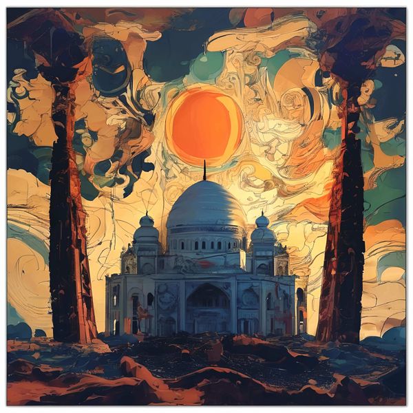 制作者と AI (AI アート作成用のプログラム Stable Diffusion XL 1.0 (1024)) とからなるアートユニット カナブストラクド によるアート画像です.そのプログラムに「Kanabstracd surrealism mosque」ということば (prompt) をあたえて創造させました. 負のプロンプトとして「surrealism mosque bows」を指定しています.