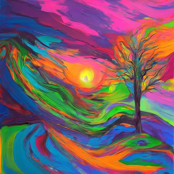 これらの画像は通常の AI アートとはちがう独自の方法を使って作っています. AI アートは AI にプロンプト (または呪文) とよばれる英語の記述をあたえて作画した画像ですが, Stable Diffusion,DALL・E 2,Midjourney などの AI プログラムによって 2022 年に爆発的に普及しました. AI アートで望む画像を作るために通常は比較的細かい指示を与えます. しかしデイシンではおもに 1〜4 語程度の短いことばや造語を Stable Diffusion XL 1.0 (1024) を使用している OpenArt,NightCafe などのウェブサイトで使用して,そのプログラムがもつ知識をいかして自由に (ジェネラティブに,創発的に) 画像をつくらせています. コントラストの調整等はしていますが,描きなおさせたり加筆したりするようなことはしていません.