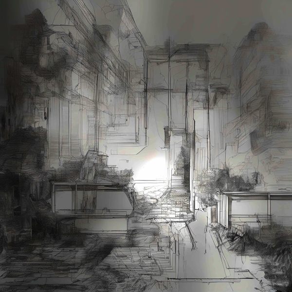 これらの画像は通常の AI アートとはちがう独自の方法を使って作っています. AI アートは AI にプロンプト (または呪文) とよばれる英語の記述をあたえて作画した画像ですが, Stable Diffusion,DALL・E 2,Midjourney などの AI プログラムによって 2022 年に爆発的に普及しました. AI アートで望む画像を作るために通常は比較的細かい指示を与えます. しかしデイシンではおもに 1〜4 語程度の短いことばや造語を Stable Diffusion XL 1.0 (1024) を使用している OpenArt,NightCafe などのウェブサイトで使用して,そのプログラムがもつ知識をいかして自由に (ジェネラティブに,創発的に) 画像をつくらせています. コントラストの調整等はしていますが,描きなおさせたり加筆したりするようなことはしていません.