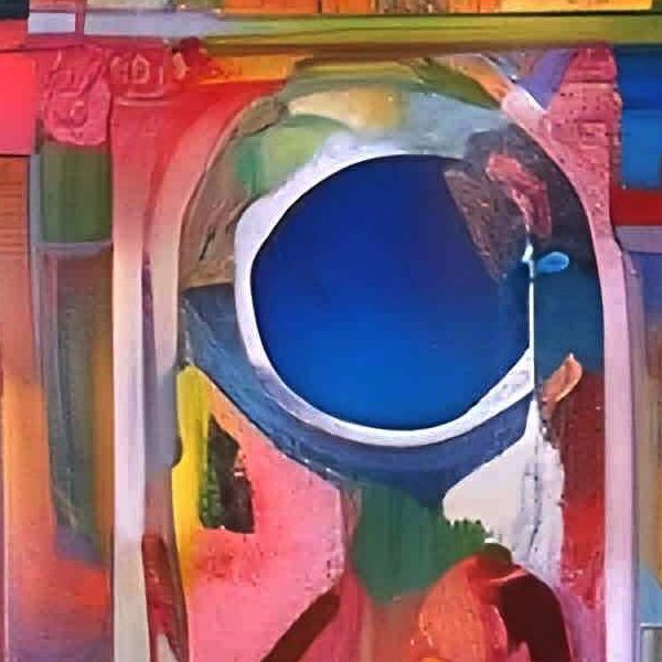 全体として,この作品は異なる芸術運動の要素を融合させ,視覚的に豊かな体験を提供しています. 見る人に多様な解釈を促す,非常にダイナミックな作品です.