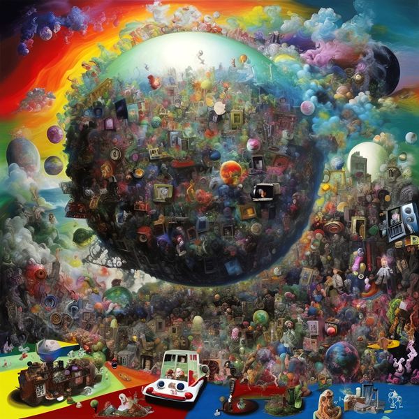 制作者と AI (AI アート作成用のプログラム Stable Diffusion XL 1.0 (1024)) とからなるアートユニット カナブストラクド によるアート画像です.そのプログラムに「Kanabstracd absurdism」ということば (prompt) をあたえて創造させました. 負のプロンプトとして「arrows」を指定しています.