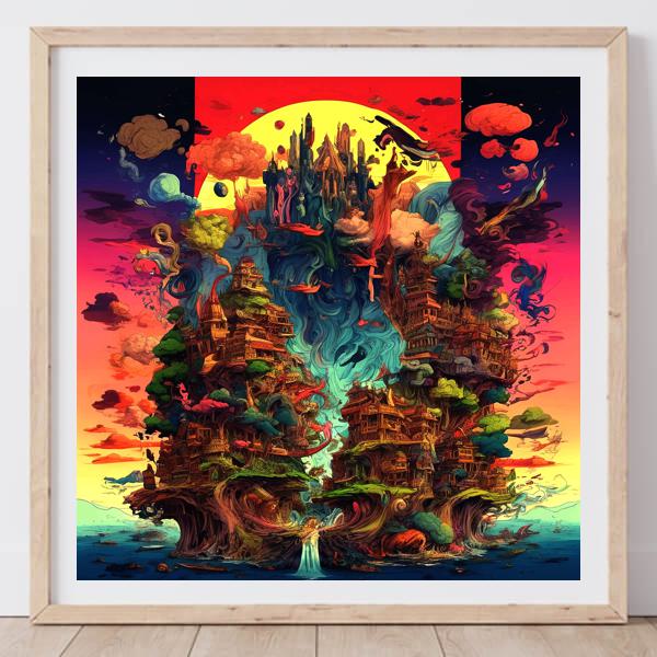 In AI art, the images generated are usually quite rough—about the size of an A6 print (roughly 500–1000 pixels on each side). To make them suitable for presentation, I use a technique called super-resolution, which increases the resolution 4–8 times higher than the original, adding finer detail. However, please note that the resolution of the product image shown above is about the same as the original and has not been upscaled.