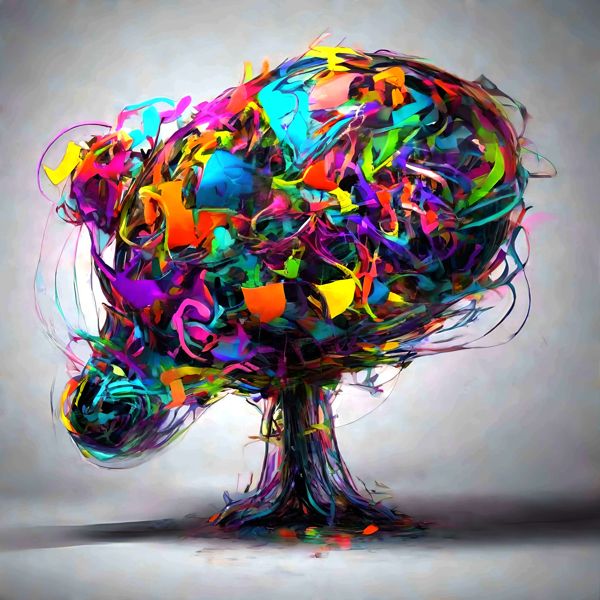 これらの画像は通常の AI アートとはちがう独自の方法を使って作っています. AI アートは AI にプロンプト (または呪文) とよばれる英語の記述をあたえて作画した画像ですが, Stable Diffusion,DALL・E 2,Midjourney などの AI プログラムによって 2022 年に爆発的に普及しました. AI アートで望む画像を作るために通常は比較的細かい指示を与えます. しかしデイシンではおもに 1〜4 語程度の短いことばや造語を Stable Diffusion XL 1.0 (1024) を使用している OpenArt,NightCafe などのウェブサイトで使用して,そのプログラムがもつ知識をいかして自由に (ジェネラティブに,創発的に) 画像をつくらせています. コントラストの調整等はしていますが,描きなおさせたり加筆したりするようなことはしていません.