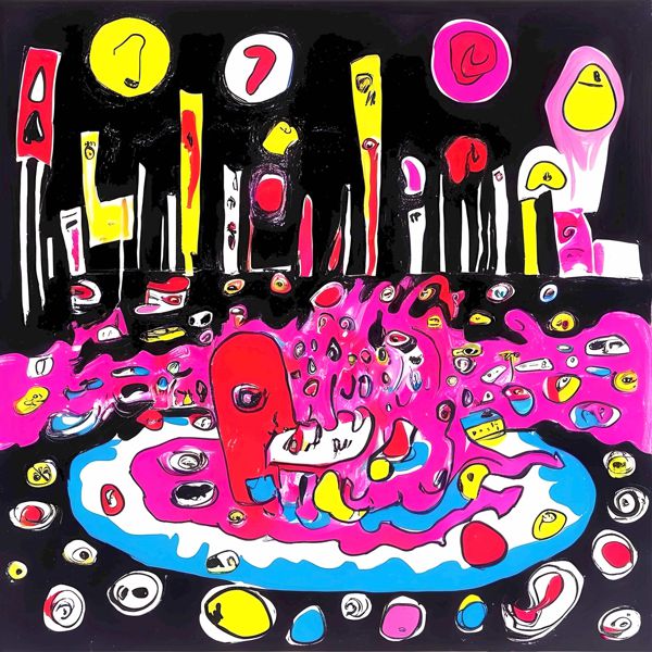 制作者と AI (AI アート作成用のプログラム Stable Diffusion XL 1.0 (1024)) とからなるアートユニット カナブストラクド によるアート画像です.そのプログラムに「Kanabstracd absurdism Seurat」ということば (prompt) をあたえて創造させました. 負のプロンプトとして「mesh」を指定しています.