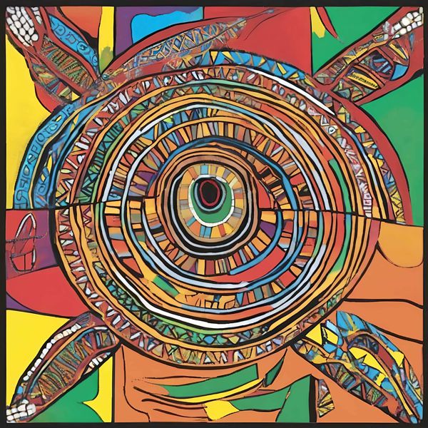 制作者と AI (AI アート作成用のプログラム Stable Diffusion XL 1.0 (1024)) とからなるアートユニット カナブストラクド によるアート画像です.そのプログラムに「Kanabstracd aboriginal Mondrian」ということば (prompt) をあたえて創造させました. 負のプロンプトとして「Mondrian rectangles」を指定しています.
