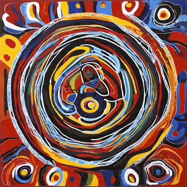 This image was created by ‘Kanabstracd,’ an art unit formed by the creator and the AI (Stable Diffusion XL 1.0 (1024), a program for creating AI artworks). I gave the program the word ‘Kanabstracd aboriginalart’ as a prompt and let it create.