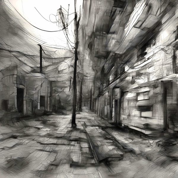 これらの画像は通常の AI アートとはちがう独自の方法を使って作っています. AI アートは AI にプロンプト (または呪文) とよばれる英語の記述をあたえて作画した画像ですが, Stable Diffusion,DALL・E 2,Midjourney などの AI プログラムによって 2022 年に爆発的に普及しました. AI アートで望む画像を作るために通常は比較的細かい指示を与えます. しかしデイシンではおもに 1〜4 語程度の短いことばや造語を Stable Diffusion XL 1.0 (1024) を使用している OpenArt,NightCafe などのウェブサイトで使用して,そのプログラムがもつ知識をいかして自由に (ジェネラティブに,創発的に) 画像をつくらせています. コントラストの調整等はしていますが,描きなおさせたり加筆したりするようなことはしていません.