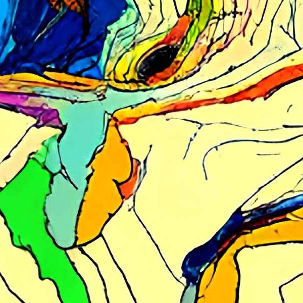制作者と AI (AI アート作成用のプログラム Stable Diffusion XL 1.0 (1024)) とからなるアートユニット カナブストラクド によるアート画像です.そのプログラムに「Kanabstracd surrealism Matisse」ということば (prompt) をあたえて創造させました. 負のプロンプトとして「surrealism Matisse checker」を指定しています.