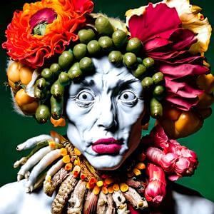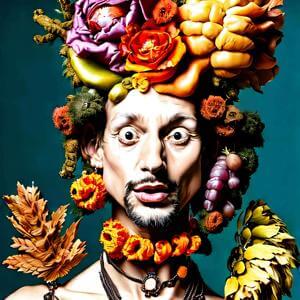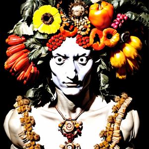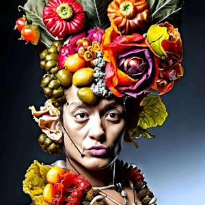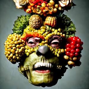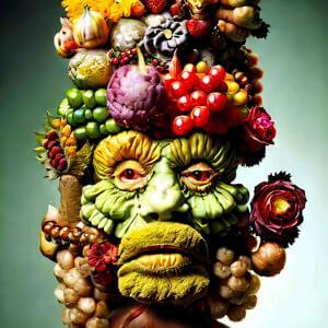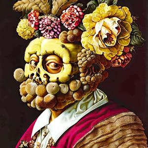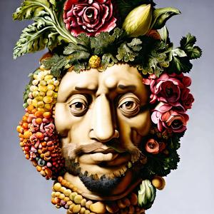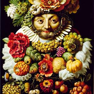 ルネサンスの画家ジュゼッペ・アルチンボルド (1526-1593) の画風に影響を受けたような絵画風の画像をデザインさせました.ただし,描いたのは AI であってジュゼッペ・アルチンボルドではありません.