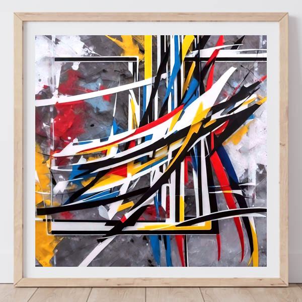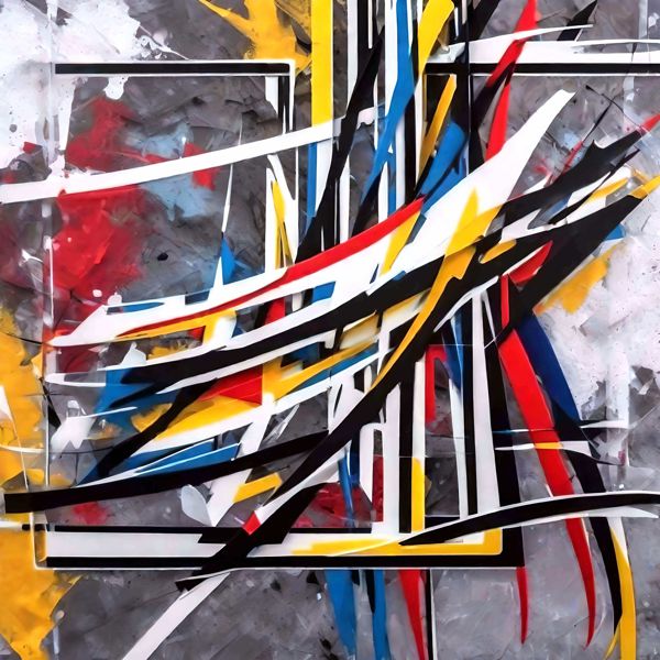 制作者と AI (AI アート作成用のプログラム Stable Diffusion XL 1.0 (1024)) とからなるアートユニット カナブストラクド によるアート画像です.そのプログラムに「Kanabstracd Mondrian」ということば (prompt) をあたえて創造させました. 負のプロンプトとして「Mondrian」を指定しています.