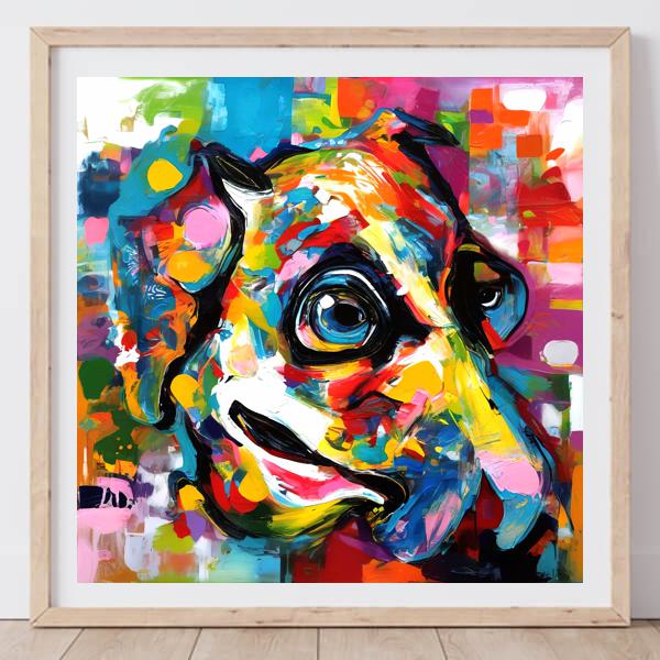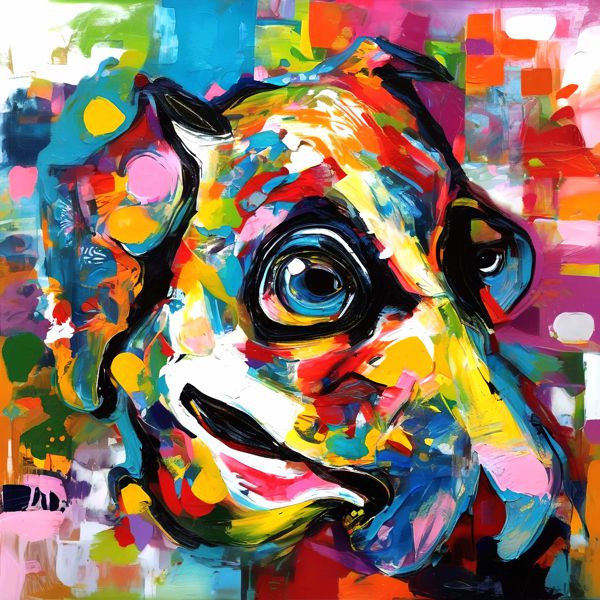 AI アートでは通常 A6 サイズ相当くらい (縦横 500〜1000 ピクセルくらい) の荒い画像しかつくれないので,超解像という技術をつかって原画より解像度を 4〜8 倍に (こまかく) しています. ただし,上の商品画像の解像度は原画と同程度なのでご注意ください.