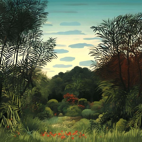 This image was created by ‘Kanabstracd,’ an art unit formed by the creator and the AI (Stable Diffusion XL 1.0 (1024), a program for creating AI artworks). I gave the program the word ‘Kanabstracd Henri_Rousseau’ as a prompt and let it create. Also “Henri_Rousseau Utamaro ” was used as the negative prompt.