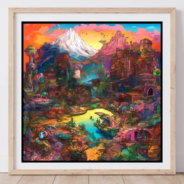 In AI art, the images generated are usually quite rough—about the size of an A6 print (roughly 500–1000 pixels on each side). To make them suitable for presentation, I use a technique called super-resolution, which increases the resolution 4–8 times higher than the original, adding finer detail. However, please note that the resolution of the product image shown above is about the same as the original and has not been upscaled.