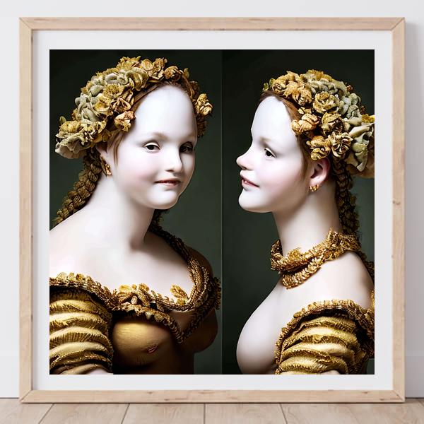 In AI art, the images generated are usually quite rough—about the size of an A6 print (roughly 500–1000 pixels on each side). To make them suitable for presentation, I use a technique called super-resolution, which increases the resolution 4–8 times higher than the original, adding finer detail. However, please note that the resolution of the product image shown above is about the same as the original and has not been upscaled.