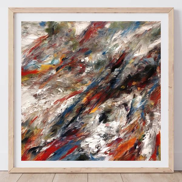 制作者と AI (AI アート作成用のプログラム Stable Diffusion XL 1.0 (1024)) とからなるアートユニット カナブストラクド によるアート画像です.そのプログラムに「Kanabstracd Pollock Gerhard_Richter」ということば (prompt) をあたえて創造させました. 負のプロンプトとして「Pollock Gerhard_Richter mesh」を指定しています.