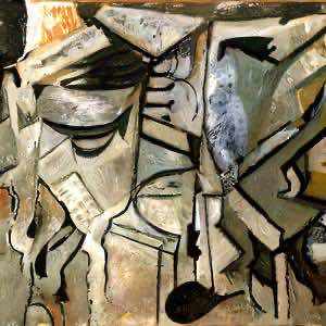 20 世紀の画家ジョルジュ・ブラック (1882-1963) の画風に影響を受けたような絵画風の画像をデザインさせました.ただし,描いたのは AI であってジョルジュ・ブラックではありません.